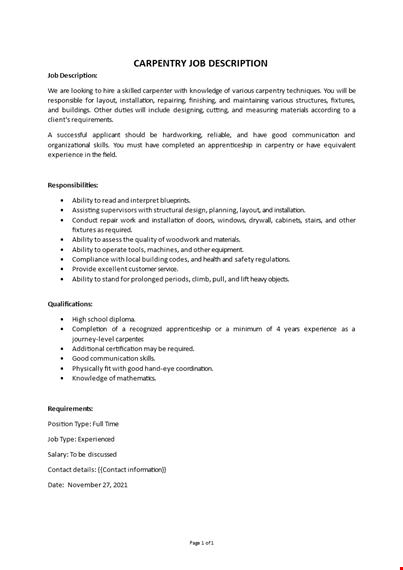 Carpentry Job Description: