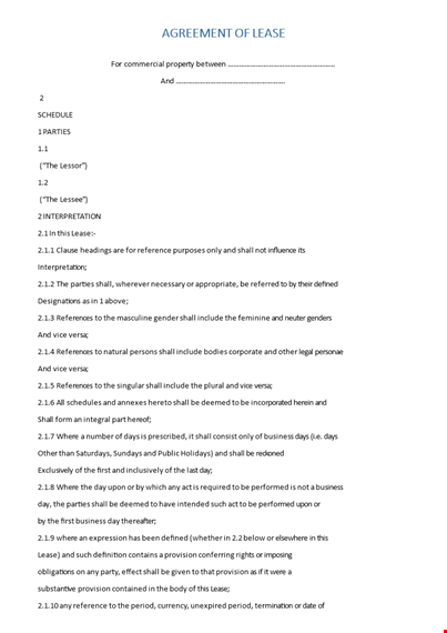 Commercial Lease Agreement Template - Create an Effective Contract for Lessee and Lessor