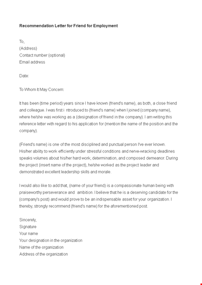 Remember, a well-written recommendation letter can make a significant impact on your friend's job prospects. Show your support and help them succeed in their career journey!