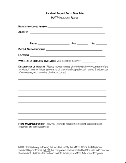- Complete Information: The template prompts users to provide essential details about the incident, such as the date, time, location, description of the event, and parties involved. This helps in creating a comprehensive record for future reference and analysis.