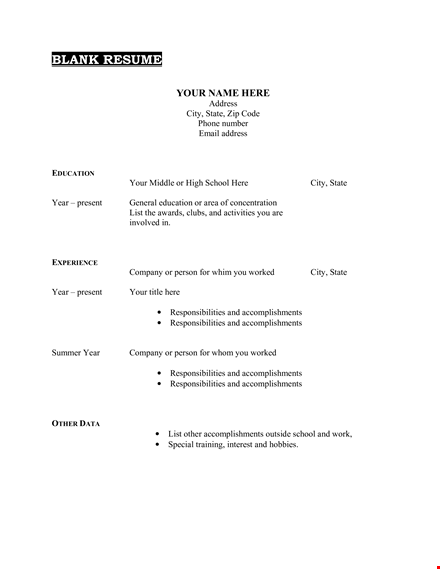 Download our printable blank resume template now and elevate your job application to new heights!
