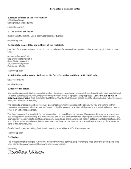 Writing a business letter becomes effortless with our "Format For A Business Letter" template in DOCX format. Simply visit BizzLibrary.com and download the template to get started. With our professionally designed template, you can save time and maintain consistency in your business correspondence.