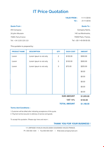Don't miss out on the opportunity to present accurate and professional quotations to your clients. Download our IT Quotation Template now and take your business to new heights!