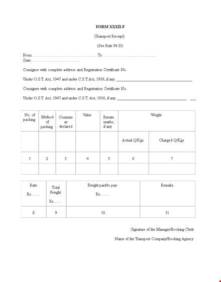 - Proof of Delivery: A transport receipt acts as clear evidence that the goods have been delivered from the consignor to the consignee. It includes a space for the consignee's signature, acknowledging the receipt of the goods in good condition.