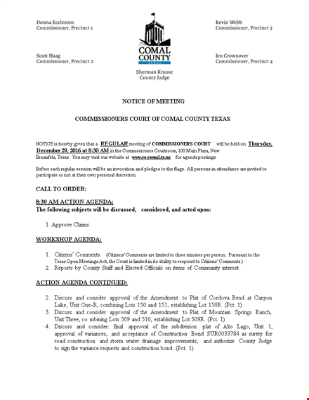 - Collaboration: An agenda allows commissioners and team members to review and provide input on the topics beforehand, leading to more meaningful and informed discussions during the meeting. It encourages collaboration and participation from everyone involved.