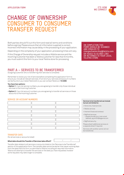 Transfer Ownership Request: Account, Customer, and Services | Telstra