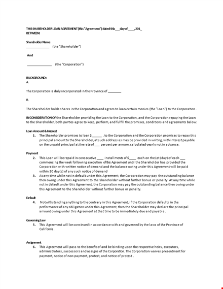 - Provide Financial Protection: A shareholder agreement can provide financial protection to shareholders by outlining the conditions under which loans can be made to the corporation. It also defines the terms and conditions for repayments and establishes interest rates and payment schedules.