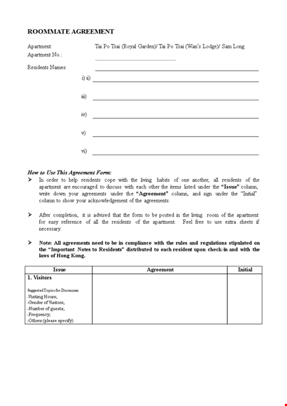 Your Roommate Agreement Template from BizzLibrary.com