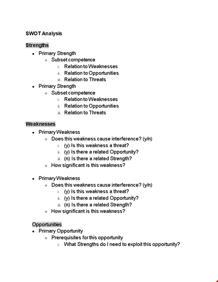 At BizzLibrary.com, you can access our SWOT Analysis Template in DOCX format, and enjoy the benefits that come with it. The process of downloading is easy, and with no strings attached. Download our SWOT Analysis Template today and take your business or project to the next level!