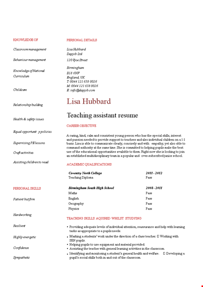 Key Features of Our Preschool Assistant Teacher With No Experience Template