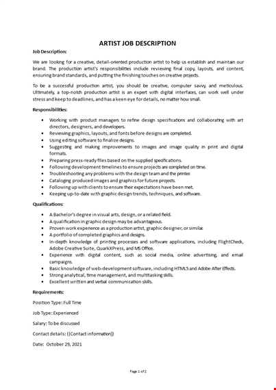 If you are a hiring agency, and looking for immediate hire, but don’t have the time to draft the job description, we got your back. Here is written a sample Artist job description that you may use in your job post.