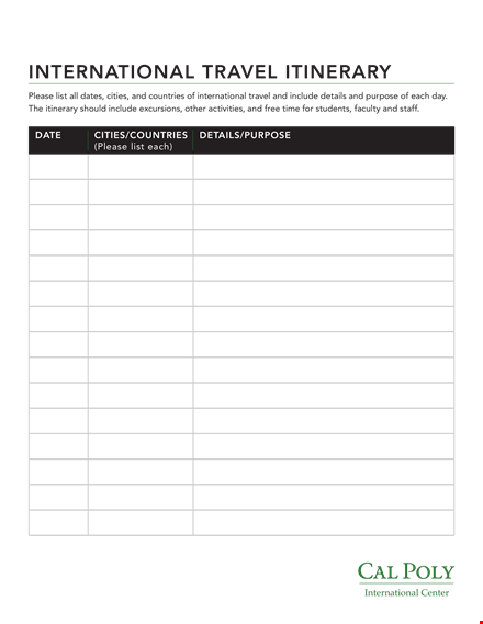 Download Our International Itinerary Template