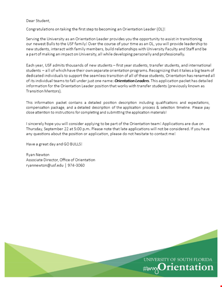 - Recognition of Future Dates and Responsibilities: If applicable, provide details about when the orientation will take place, the responsibilities of the new position, and any other pertinent information.