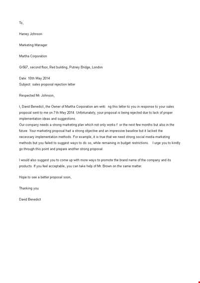 Sales Proposal Rejection Letter