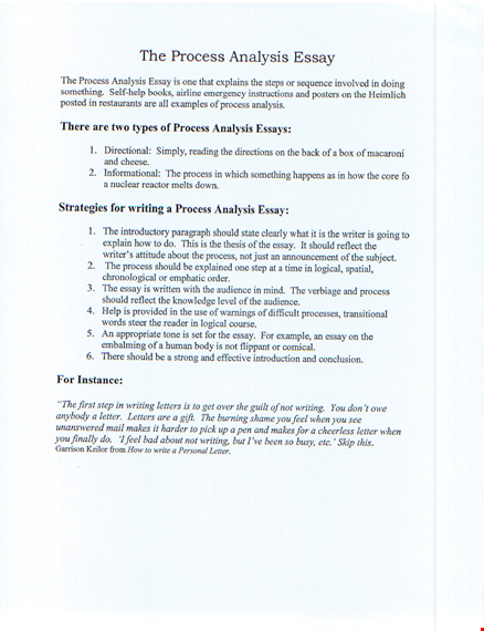 - Improving Writing Skills: By studying a well-written process analysis essay, you can enhance your own writing skills. You'll learn how to write concisely, use appropriate vocabulary, and adapt your tone to ensure clarity and precision.