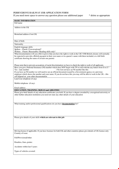 Submitting a well-prepared and comprehensive job application is crucial when it comes to securing a railway job. The Railway Job Application Form serves as a standardized document that allows the employer to gather relevant information about each applicant in a consistent manner. Here's why our Railway Job Application Form is a valuable resource for your job application: