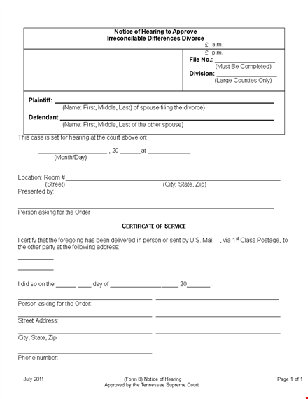 Divorce Papers Template - Prepare for Your Divorce Hearing with Ease