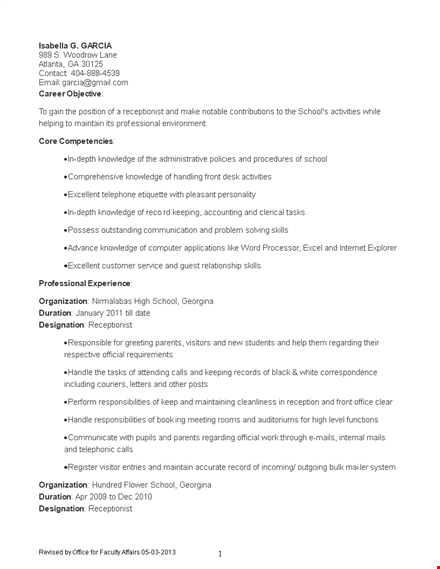 To excel in the role of a Primary School Receptionist, it is essential to possess specific knowledge and skills. Our document template covers the following key responsibilities: