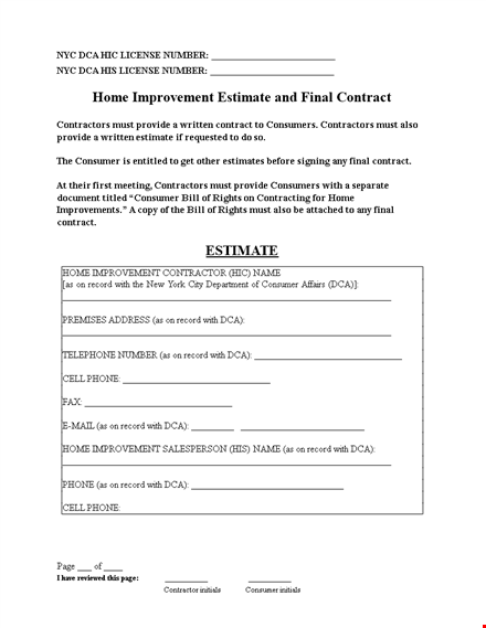 Don't leave your contractor-consumer relationship vulnerable to uncertainties and potential risks. Download our professionally drafted estimate template in DOCX format today and ensure that you have a solid foundation for your project. It's an essential tool for any contractor or consumer looking to establish a clear and detailed agreement.