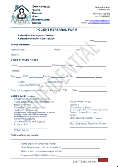 - Improved Communication: With all the necessary information in one place, the referral form helps ensure clear and accurate communication between the referring party and your service team. It minimizes the potential for misinterpretation or missing details, allowing for a smoother and more efficient process.