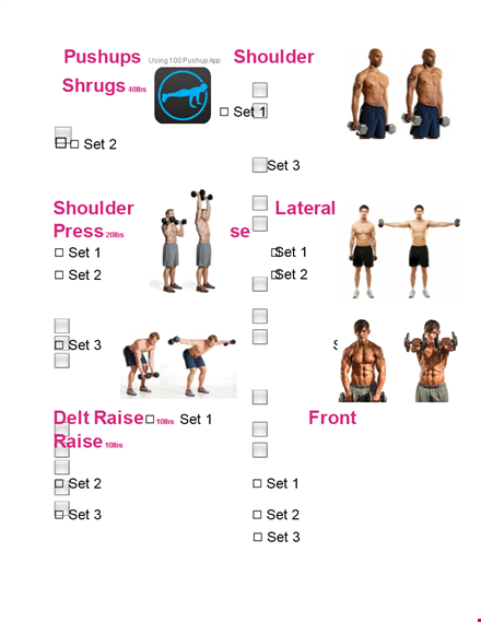 - Curl and Raise Sections: The template includes specific sections for popular exercises like bicep curls and shoulder raises. However, you can easily customize these sections to include any other exercises that are part of your routine.