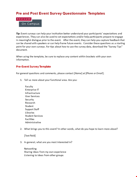 A questionnaire template is a ready-to-use document that contains a set of questions about a specific topic or event. It's designed for organizations that want to gather feedback from their stakeholders, such as event attendees, customers, employees, or survey respondents.