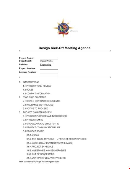 - Establish Project Scope: The agenda allows you to clearly define the scope of the design project, ensuring everyone's understanding and agreement on the project's objectives and deliverables.