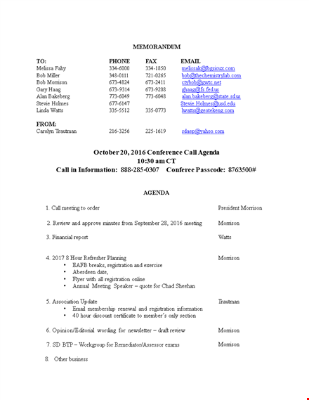 Conference Call Agenda Format