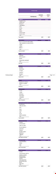 - Organized Expense Categories: The template is designed with pre-defined expense categories specific to weddings, such as reception, ceremony, attire, transportation, and more. This helps you allocate your budget more effectively and ensures that you don't overlook any important expenses.