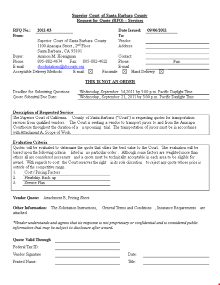 - Legal Protection: The RFQ serves as a legal document that outlines the terms and conditions of the bid process, ensuring that all parties are clear on their obligations and responsibilities. It also helps protect your business interests by establishing clear benchmarks and expectations.