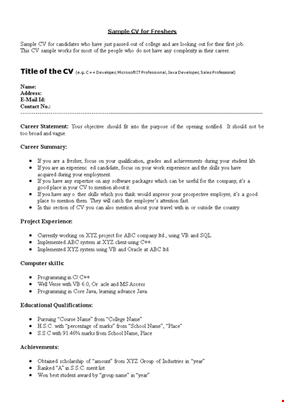 - Showcasing Your Java Skills: As a Java developer, it's essential to demonstrate your proficiency in Core Java concepts, such as object-oriented programming, data structures, and algorithms. A resume tailored for Core Java fresher positions will emphasize your technical skills and projects.