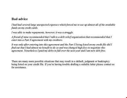Letter of Explanation & Credit Agreement - Recommended Sample