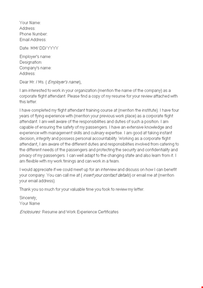 Corporate Flight Attendant Cover Letter