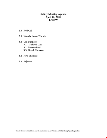 - Organization and Structure: An agenda provides structure and keeps the meeting on track. It helps you allocate time for each topic, ensuring that important safety concerns are sufficiently discussed, and that the meeting stays within the allocated timeframe.