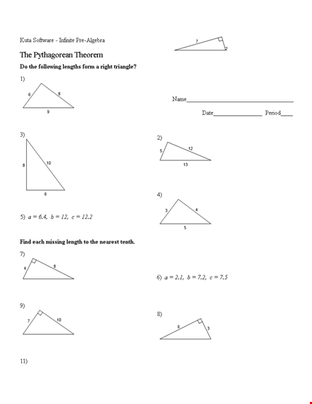 Our Pythagorean Theorem document template is a valuable learning tool for students studying infinite subjects, such as Pre-Algebra. Here are some of its key features: