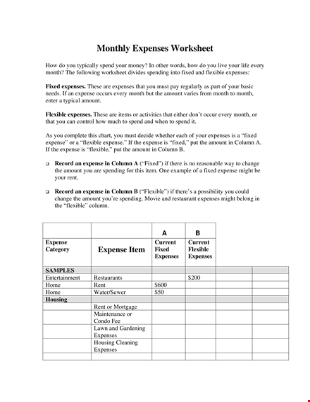 Get Your Monthly Expenses Worksheet