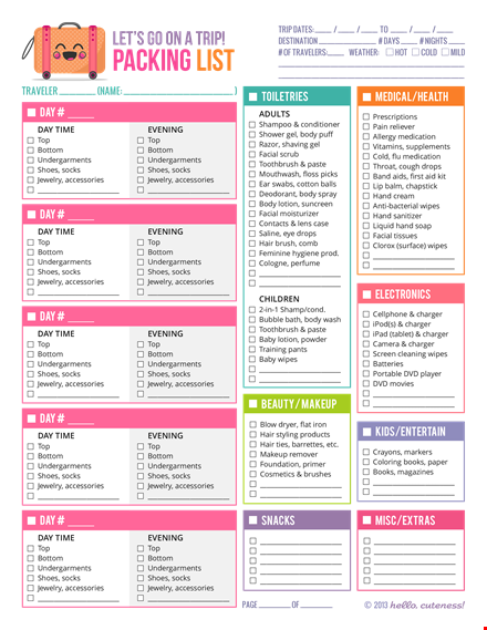 - Stay Organized: Our template is designed to help you stay organized and keep track of all the items you plan to bring on your trip.