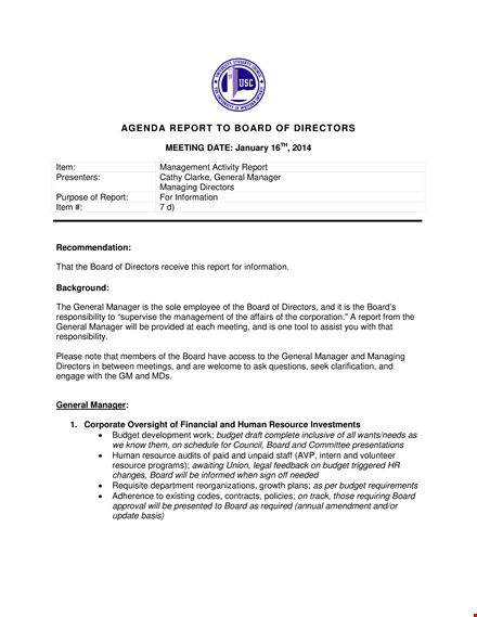 A well-structured board of directors report agenda is crucial for the success of any organization. It serves as a roadmap for board meetings, ensuring that all relevant topics are discussed and decisions are made in a timely manner. Here's why having an effective agenda is essential: