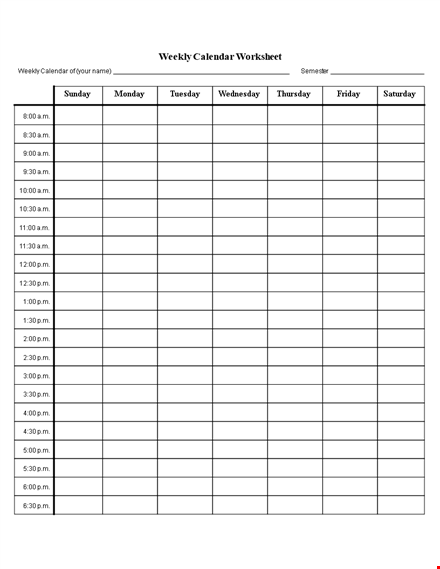 - Structured Planning: With a weekly calendar worksheet, you can break down your week into manageable chunks and allocate specific time slots for different tasks or activities. This structured approach ensures that you make the most of your time and prioritize important tasks.