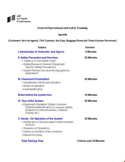 The General Operational and Safety Training Agenda Template