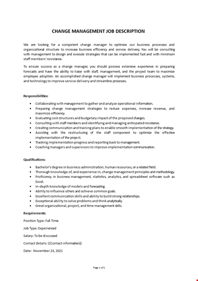 Change Management Job Description: