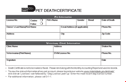 Pet Death Certificate Template - Download Now for Vital Death Information & License Purposes