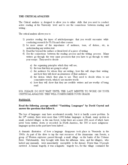 A critical analysis is a crucial skill that allows you to examine and evaluate the meaning and significance of a subject. It involves careful consideration of various aspects, such as language, context, and arguments. Here are a few reasons why using a template for your critical analysis can be beneficial: