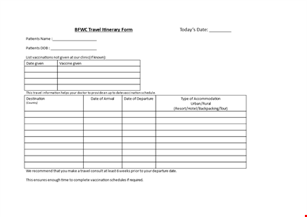 - Enhanced Communication: A comprehensive itinerary can serve as a communication tool to share important travel details with patients and any other stakeholders involved in their care.