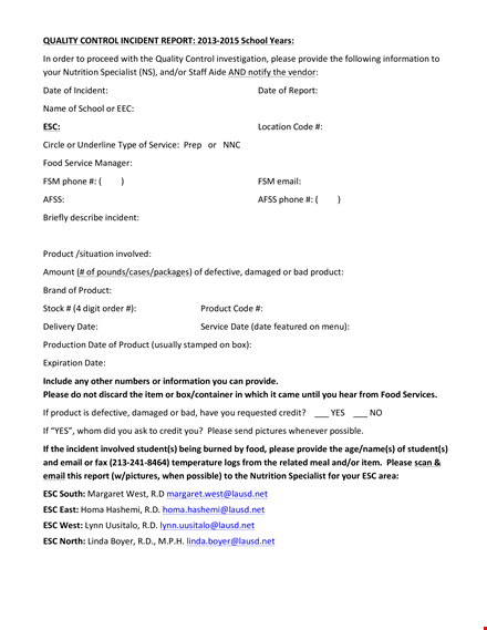 Quality Control Incident Report - Efficient Product Incident Resolution
