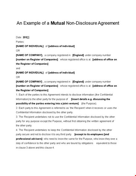 Easy to Use Non Disclosure Agreement Template for Parties and Recipients