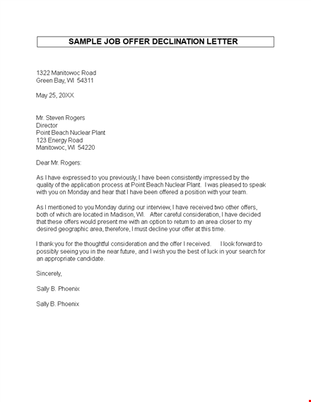Job Offer Rejection Letter - | Formal Employment Rejection, Manitowoc, Rogers