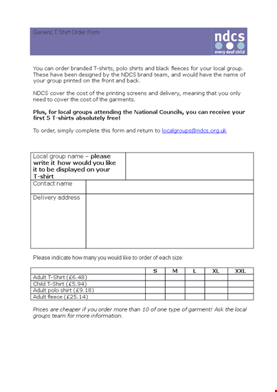 - Customization: Our Generic T-Shirt Order Form Template can be easily customized to suit your specific needs. You can add your group's logo, branding, or any other details that are relevant to your t-shirt order.