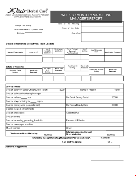 Marketing Manager Weekly Report - Achievements and Successes of a Skilled and Efficient Manager