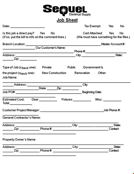 Electrical Job Sheet template